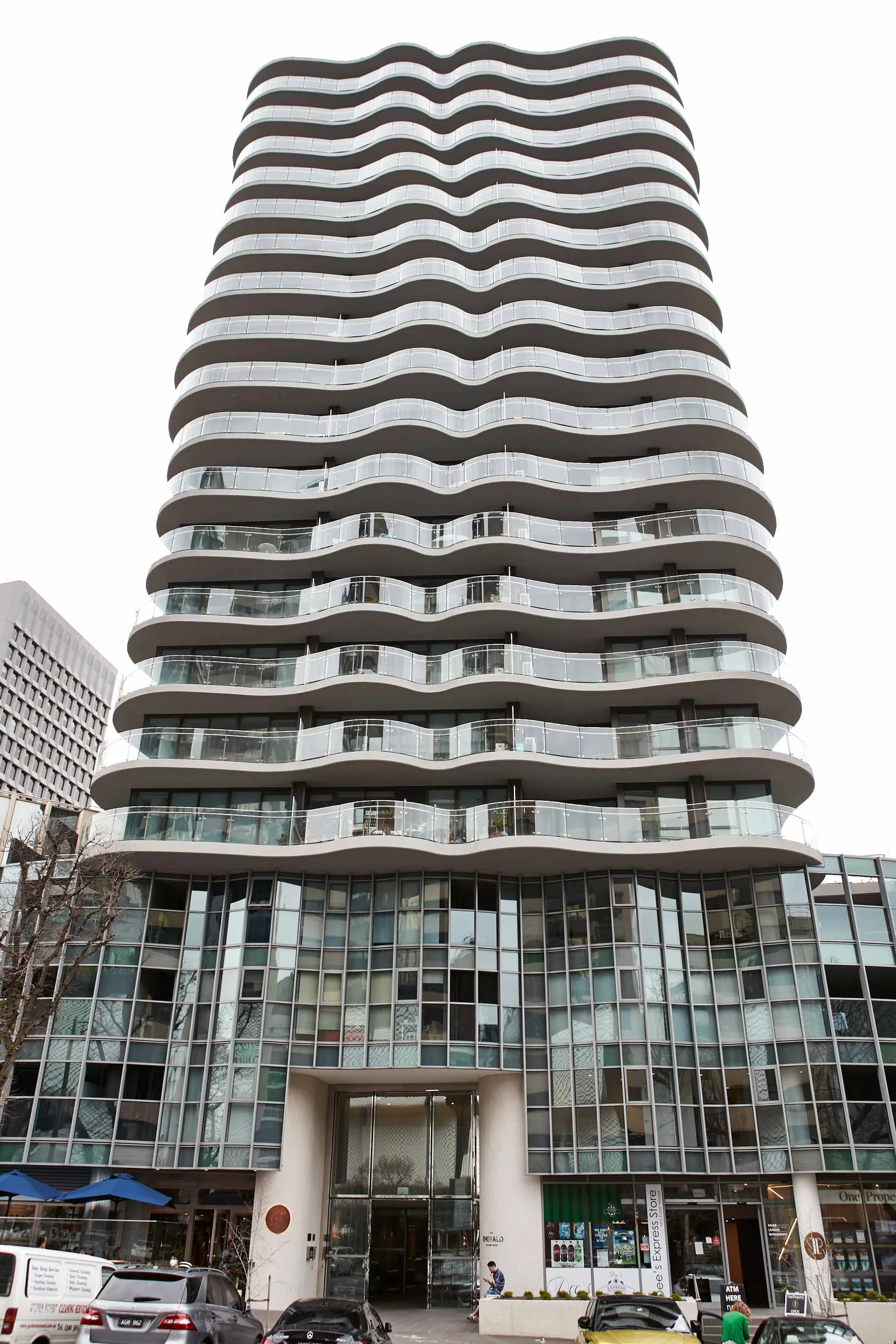 The Emerald is a 20 storey residential apartment building with a large above and below ground car park. At first glance, the building is characterised by a distinct flowing façade reminiscent of the gentle water ripples which are viewable, across the road from the site, on Albert Park Lake.
